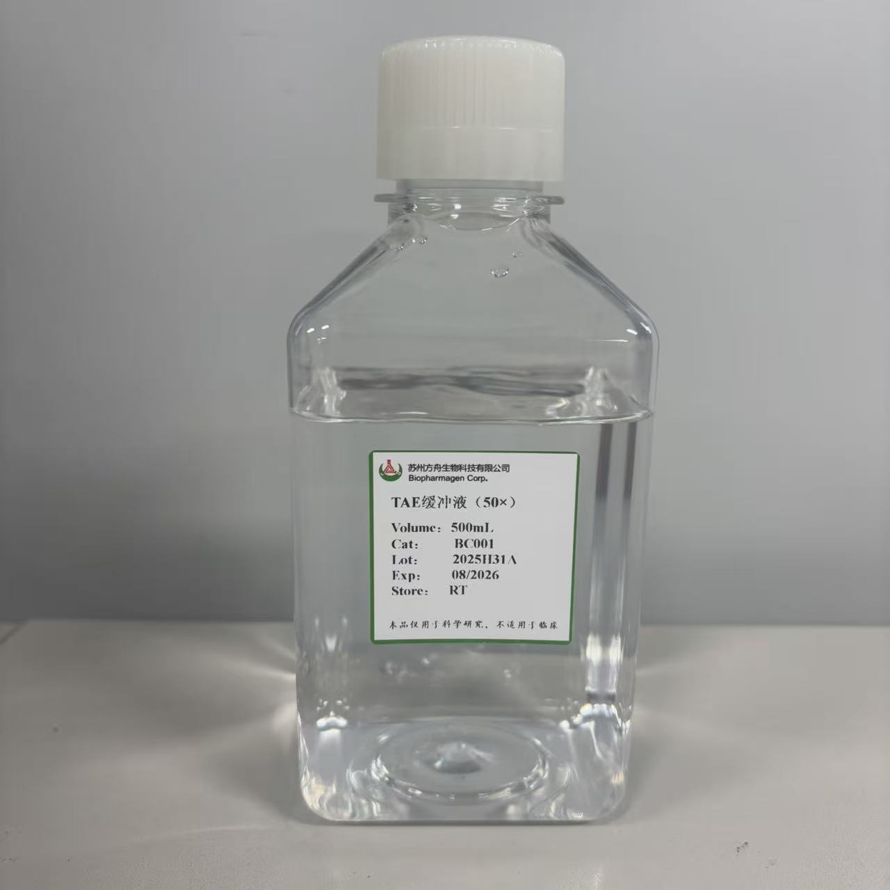 TAE缓冲液(Tris-Acetate-EDTA Buffer)是分子生物学中常用的核酸电泳缓冲液之一,主要用于DNA的琼脂糖凝胶电泳分析。其组成包含Tris(维持pH稳定性)、乙酸盐(提供导电离子)以及EDTA(螯合二价金属离子以抑制DNA酶活性)。TAE缓冲液具有较低的电导率和离子强度,使得双链线性DNA在该体系中的迁移速率较快,尤其适用于大于13 kb的大片段DNA的分离,分辨率较高。此外,TAE也常用于DNA片段的回收纯化,因其对后续酶切、连接和测序等操作的兼容性良好。尽管其对小片段DNA的分辨能力略低于TBE缓冲液,且缓冲容量较小,长时间电泳时可能出现极化现象,但TAE仍在克隆、鉴定和回收DNA片段等常规实验中扮演着不可替代的角色。